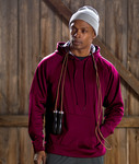 100% polyester fleece • 8-oz. • moisture-wicking • smooth durable exterior • soft brushed inner layer • anti-pill • front pouch pocket • 3-piece hood with self-fabric interior • dyed-to-match drawstring with metal tips • half-moon patch • double-needle open cuffs and hem • tagless • Sizes: S-4XL